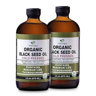 Organic Black Seed Oil - USDA Certified Cold Pressed Glass Bottle Over 1.5% Thymoquinone 3X strength Turkish Black Cumin Nigella Sativa non-GMO 100% Pure Blackseed Oil 32oz Glass 2X16 Bottle