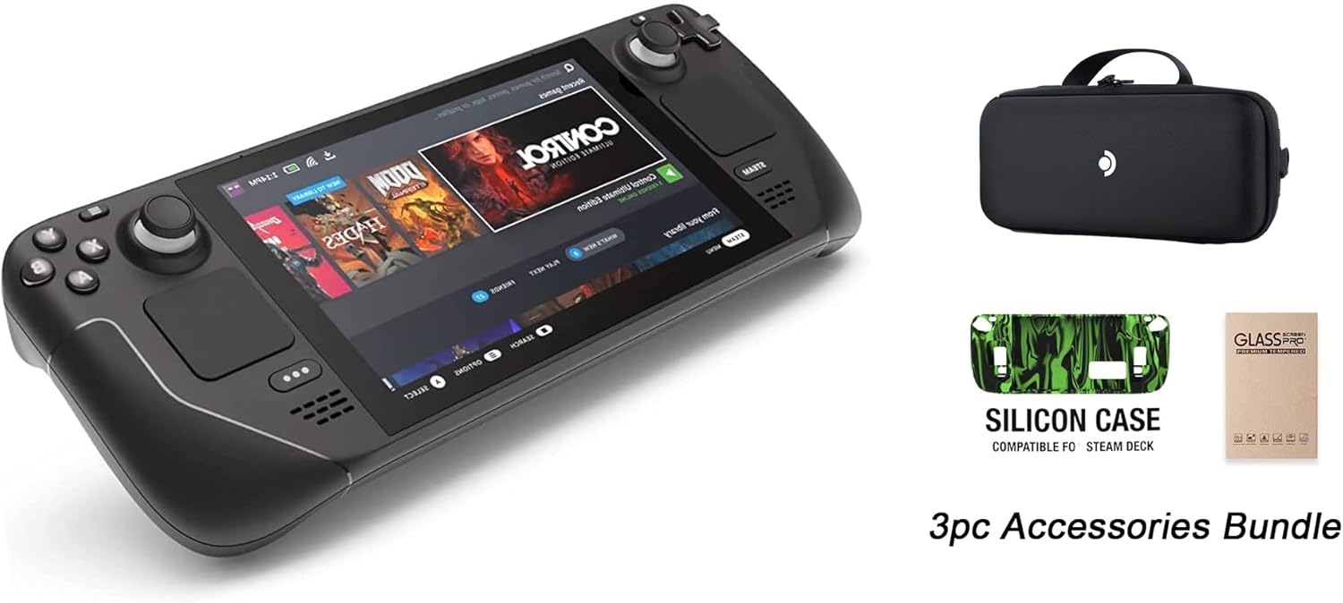 Valve Steam Deck 256GB Handheld Gaming Console with Carring case, 1280 x 800 LCD Display, Bundle Silicone Soft Cover Protector & Tempered Glass Film
