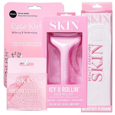 Self Care Spa Day Bundle Korean Beauty Celavi Facial Mask, Beauty Creations Icy U Rollin Face Roller, Skin Microfiber Headband & Freshness Please Cleansing Sponges